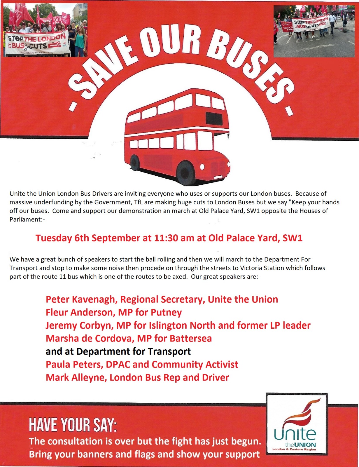 “Don’t cut workers’ jobs and pay, don’t cut communities off. Instead, get on the side of working people and demand the funding needed to run a sustainable public transport system in London.